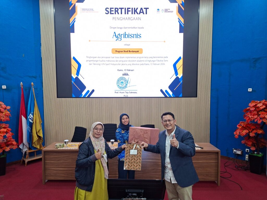 The Agribusiness Study Program achieved a remarkable accomplishment during the Faculty of Science and Technology (FST) lecturers’ meeting held on 12 February 2026. On this occasion, the Agribusiness Study Program received the “Impactful Study Program” award, an appreciation for its outstanding achievements in implementing work programs oriented toward improving student quality and strengthening the academic ecosystem.
